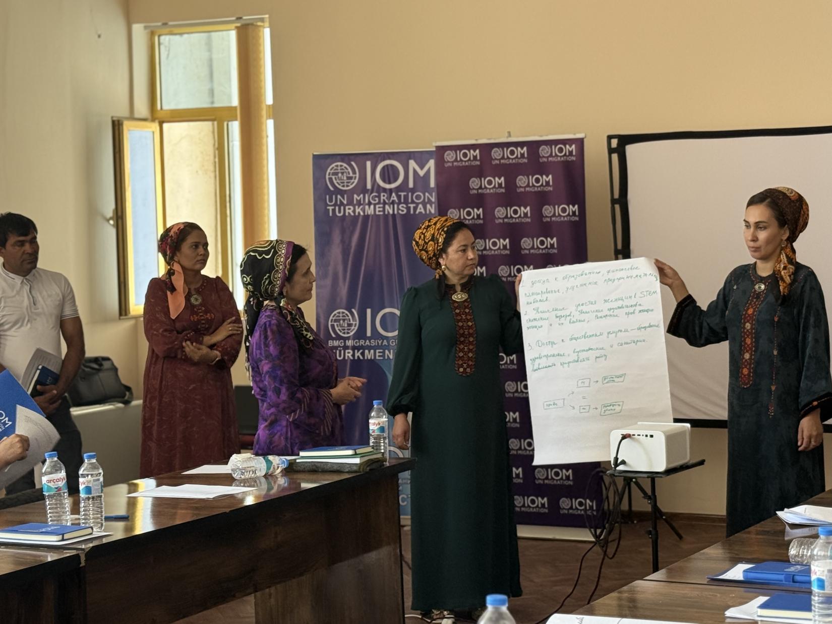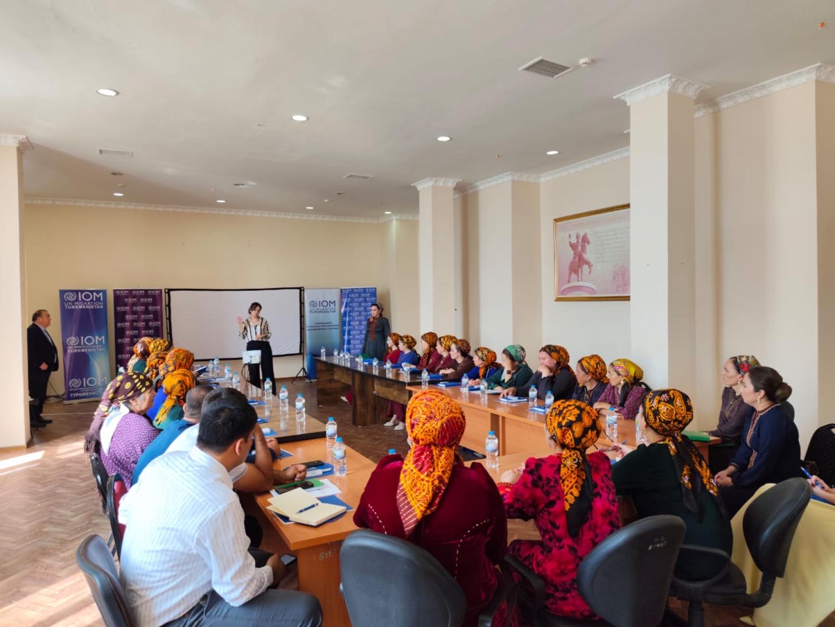 Ашхабад, 18 сентября 2025. Свыше 40 представителей государственных структур и специалистов национальных общественных организаций Лебапского и Ахалского велаятов повысили знания по гендерно-ориентированному планированию и бюджетированию на местном уровне в ходе двухдневных семинаров, организованных Международной организацией по миграции (МОМ) при поддержке Союза женщин Туркменистана в период с 8 по 12 сентября 2025 года в городах Сейди и Теджен. Cеминары прошли при участии женщин афганских сообществ, проживающих в этих регионах.